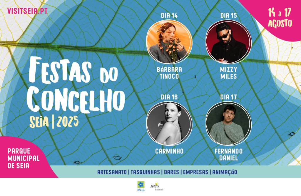 De 14 a 17 de agosto, Seia volta a encher-se de cor e alegria para celebrar as Festas do Concelho, no Parque Municipal. Um evento imperdível, que combina música ao vivo, gastronomia, artesanato e muita animação!